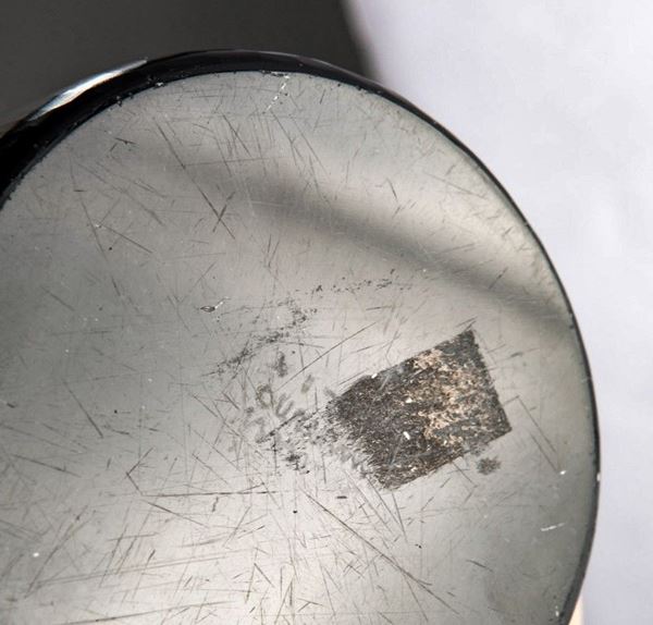 Vetro soffiato rosato, battuto, rifinito alla mola.