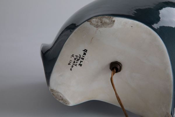 Terraglia a colaggio raffigurante maschere Comica e Tragica con decorazione ad aerografo.