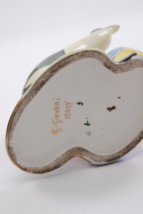 SculturaCeramica smaltata in policromia e lustro metallico.Vicenza, anni '50Firmata sotto la base G. Girardi Italy,