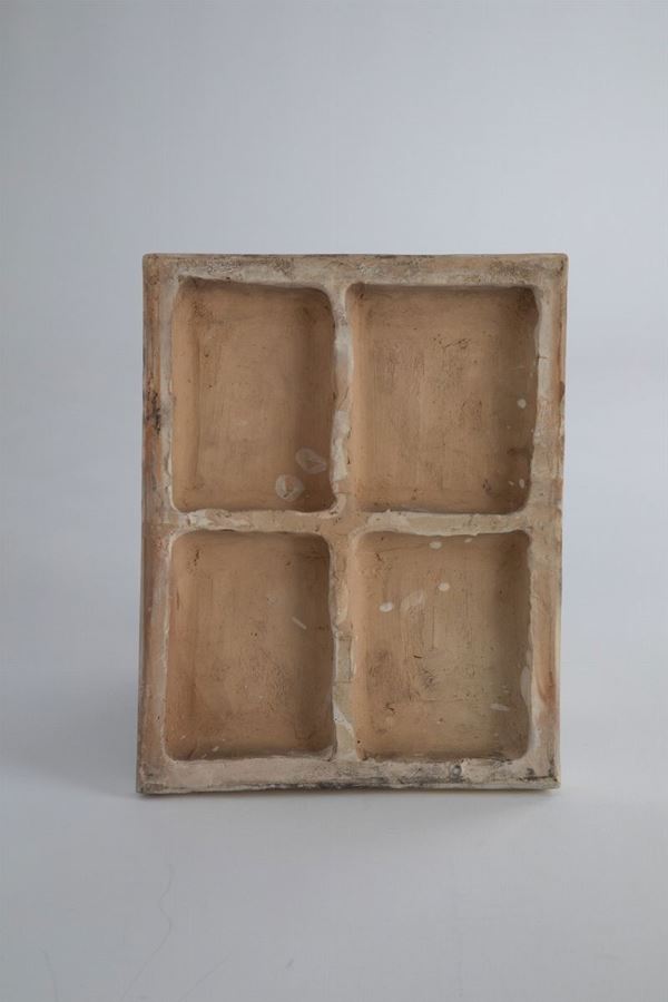 FormellaCeramica realizzata per la decorazione degli edifici INA CASA.Questa riconducibile ad un edificio in Via De Gasperi, Faenza (RA).