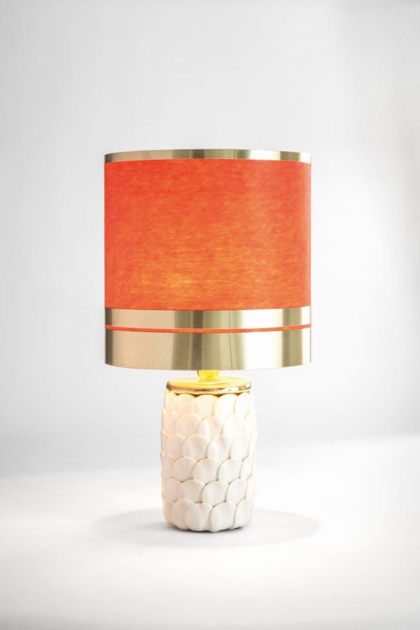 Lampada da tavoloCeramica bianca, ottone.Anni '70