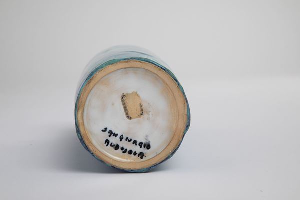 BottigliaCeramica smaltata.Prod. San Giorgio, Albisola, 1960 ca.Firmata San Giorgio Albisola sotto la base.