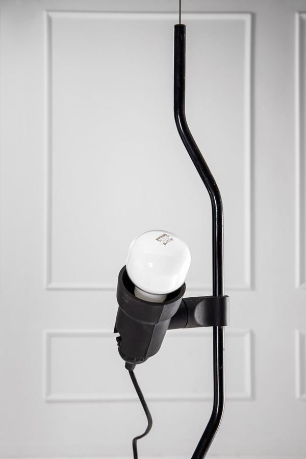 Lampada cielo-terra ParentesiTubolare in acciaio, cavetto di acciaio.Prod. Flos, 1971Etichetta del produttore.