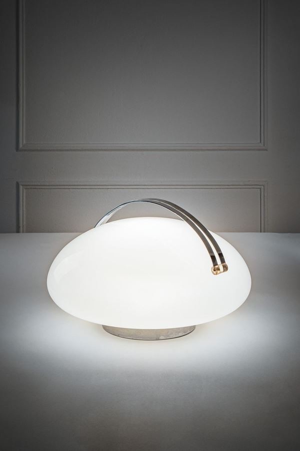 Lampada da tavolo Il CamminoMetallo cromato, vetro, acrilico.Prod. Iter Elettronica, 1970 ca.Etichetta del produttore.
