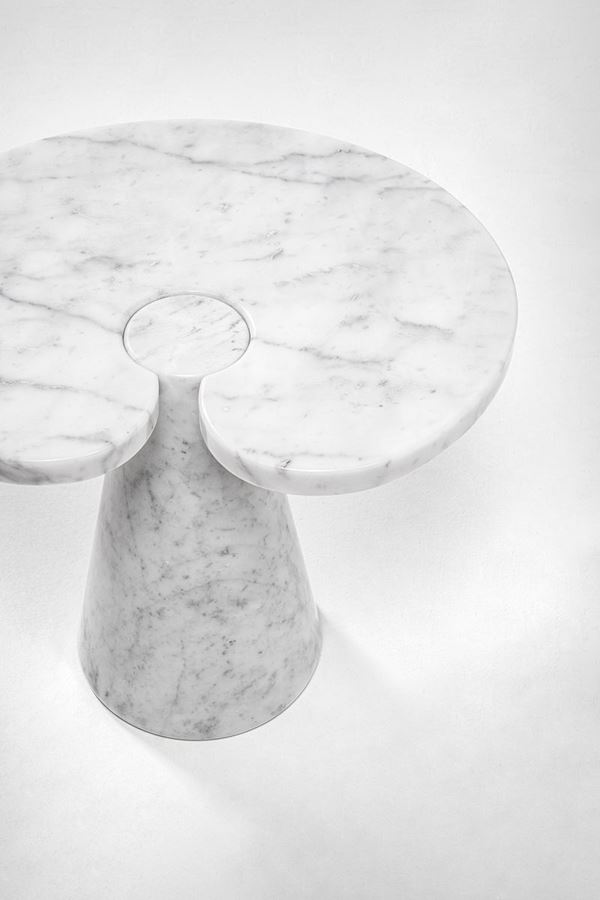 Tavolino serie ErosElementi con incastro a secco in marmo bianco.Prod. Skipper, 1970 ca.