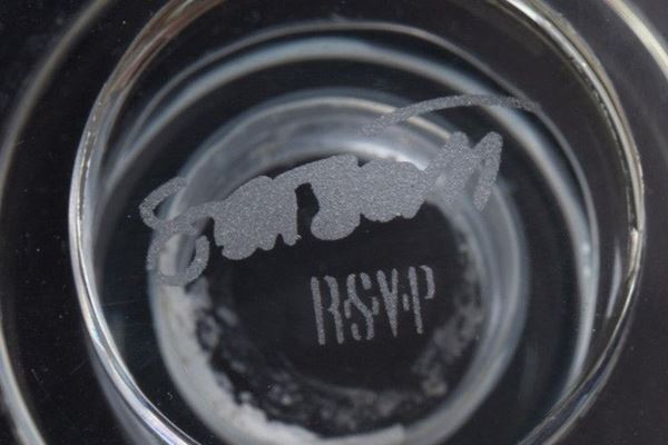 PortacandelaVetro incolore.Prod. RSVP, 2005 ca.Sotto la base firma del designer e marchio del produttore.