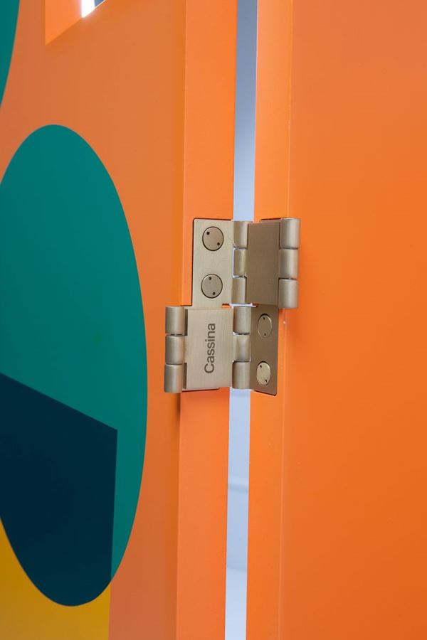 Marchio stampato del produttore su un pannello, marchio incusso Cassina sulle cerniere.