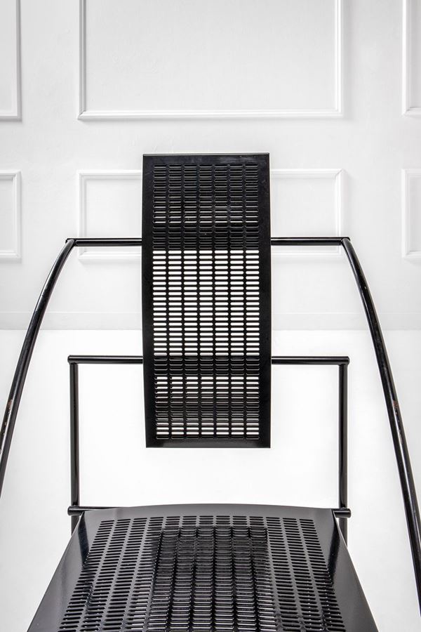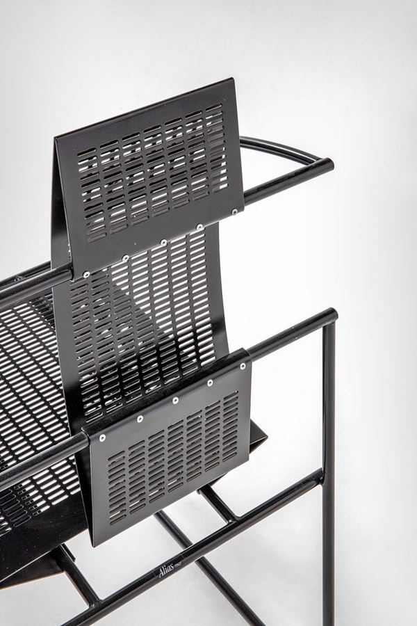 Quattro sedute mod. QuintaMetallo verniciato curvato e preforato.Prod. Alias, 1985 ca.Etichetta del produttore su tre sedute.