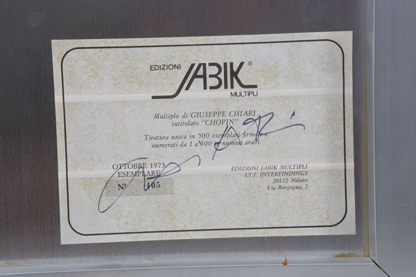 Firmata a mano e numerata 405/500 su etichetta al retro.