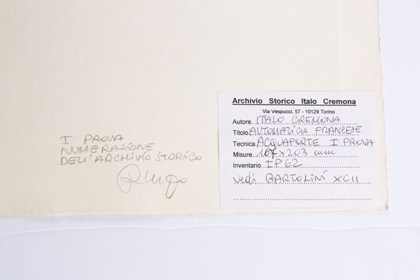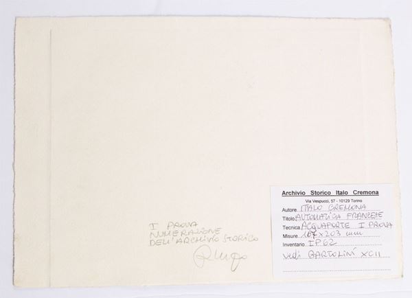 Al retro etichetta originale Archivio Storico Italo Cremona con numero di inventario IP 62.