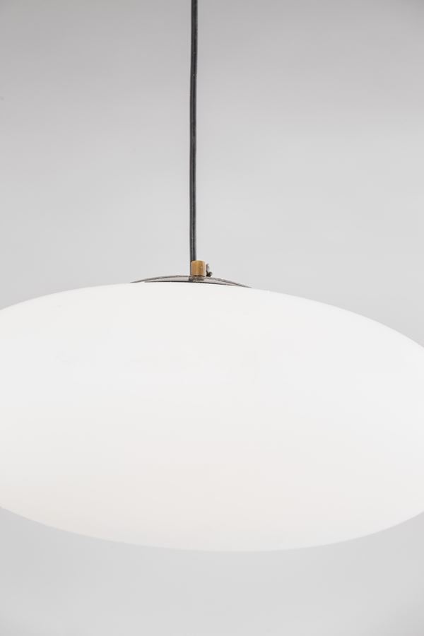 Vetro lattimo satinato, metallo verniciato, ottone.