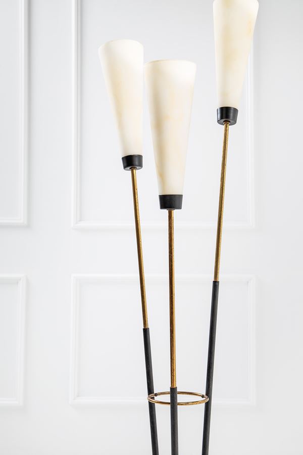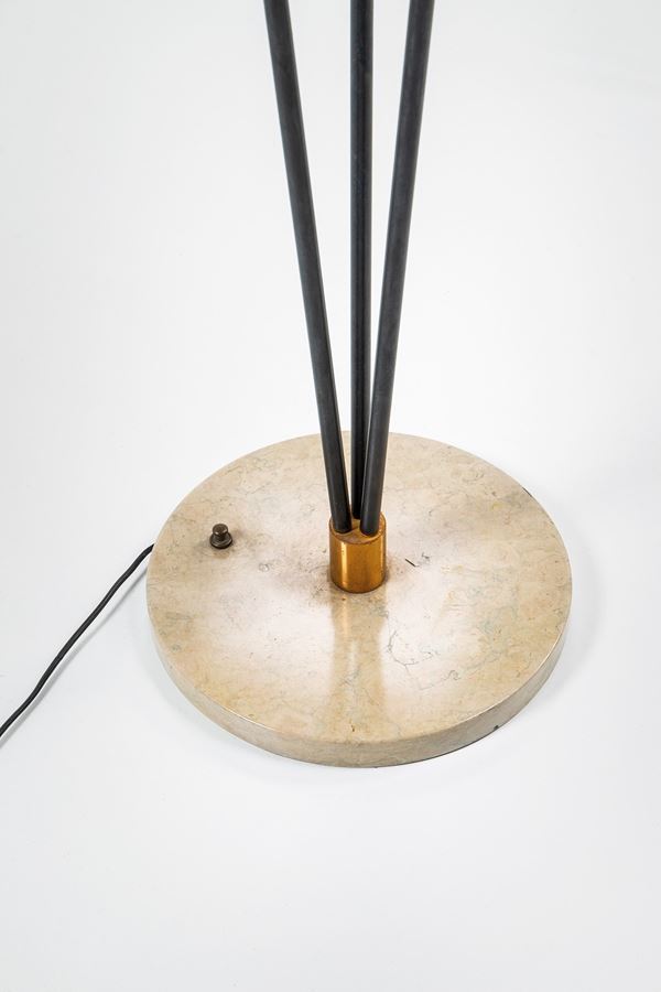 Ottone lucido, ottone verniciato, marmo, vetro opalino satinato.