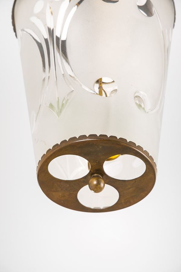Ottone, vetro satinato con decorazione in vetro trasparente.