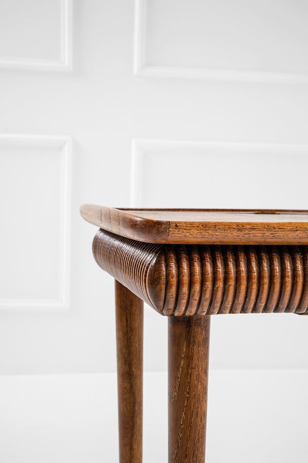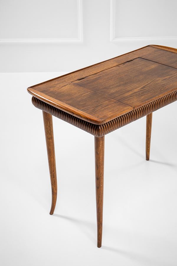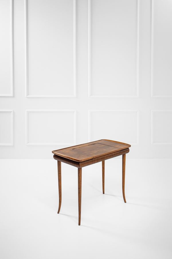 Legno massello, legno tinto e decoro grissinato, vetro specchiato.