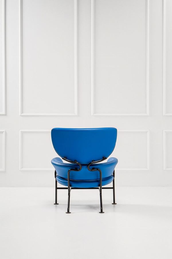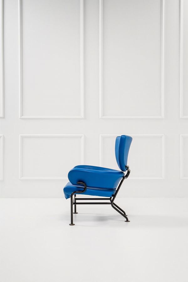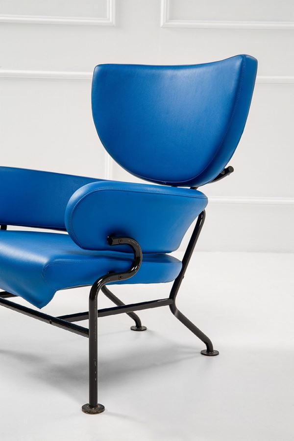 Metallo verniciato, imbottitura in gomma, similpelle.