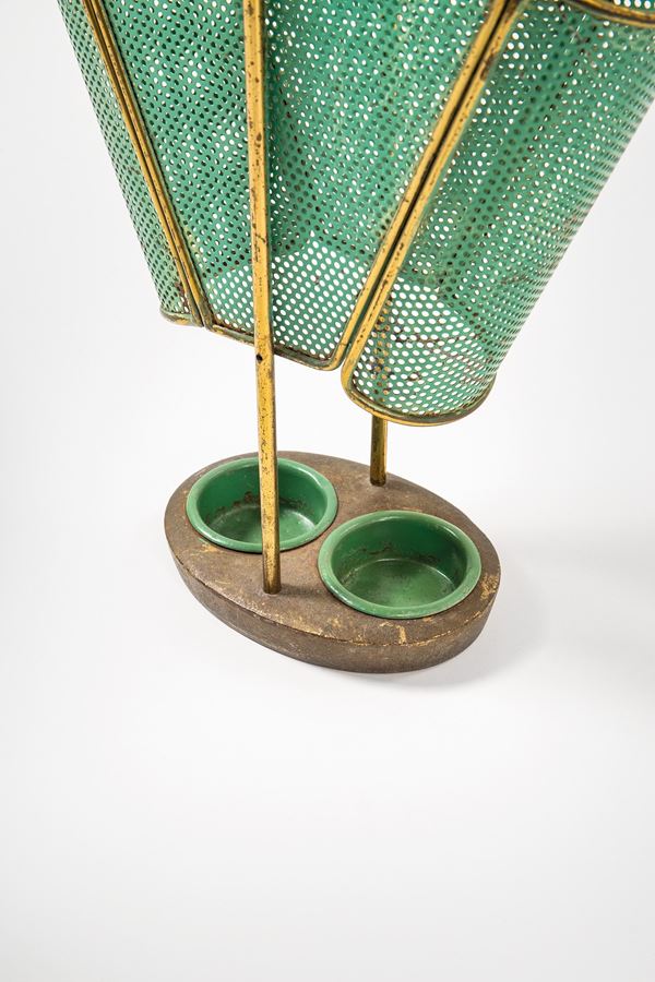 Lamierino di metallo traforato, ottone, metallo laccato.
