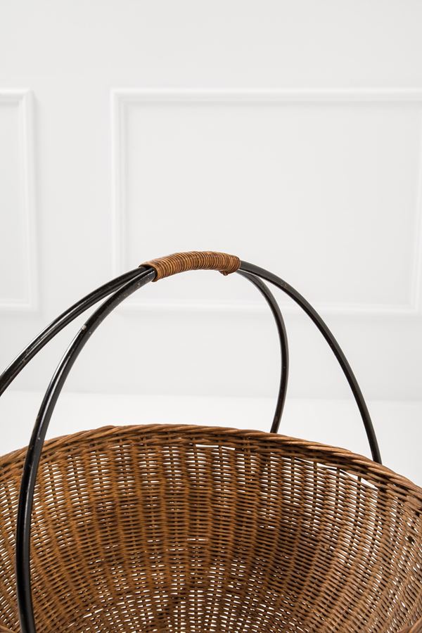 Tondino di ferro smaltato, midollino intrecciato.