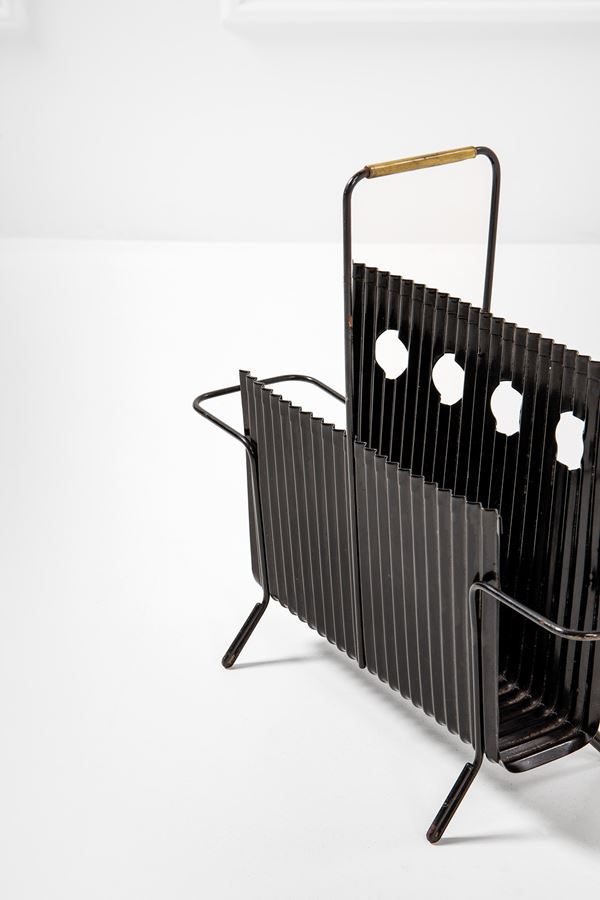 Lamiera di metallo ondulata, tondino di metallo verniciato, legno.