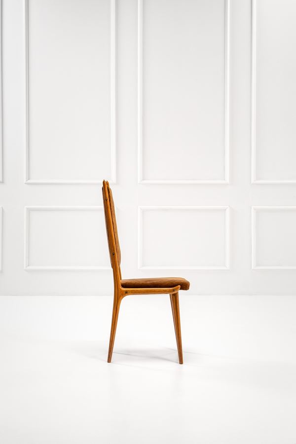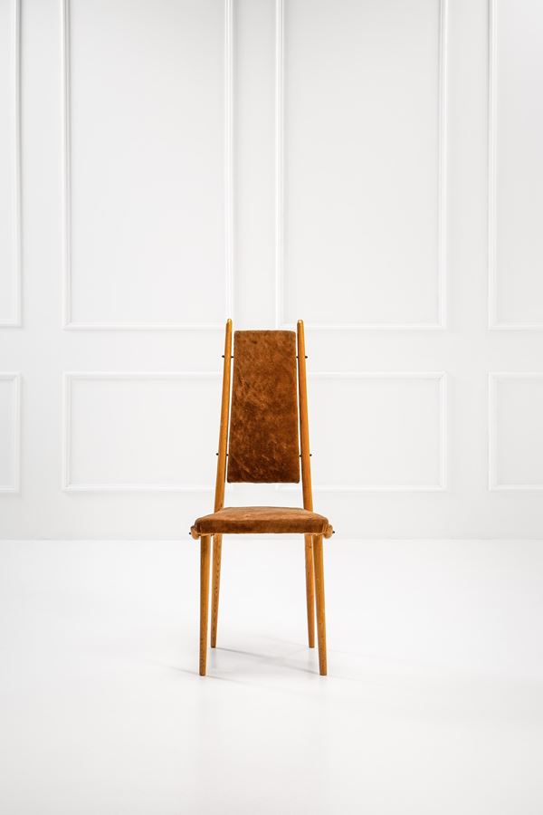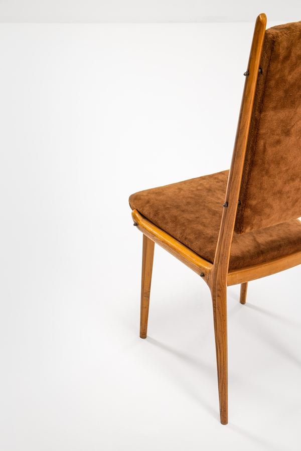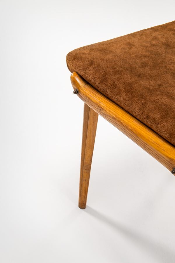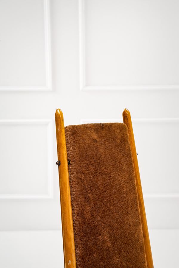 Legno sagomato, ottone, tessuto.