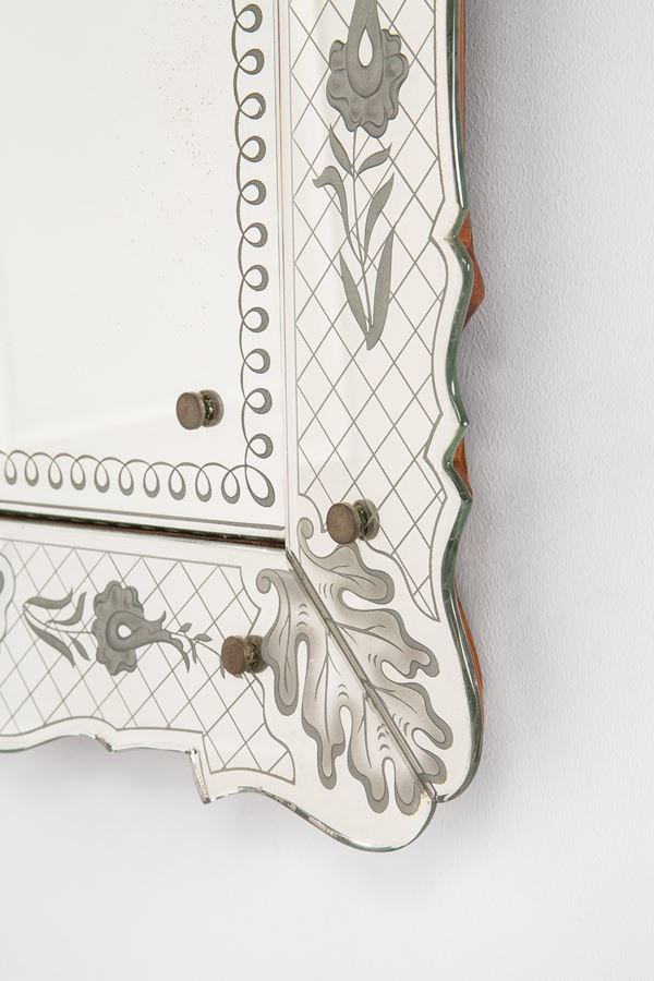 Vetro specchiato, molato e inciso.