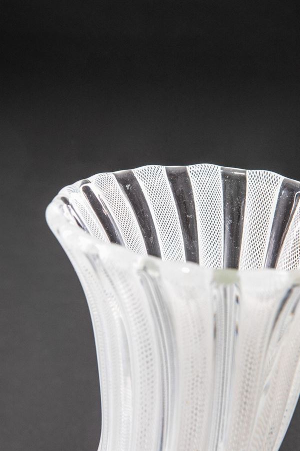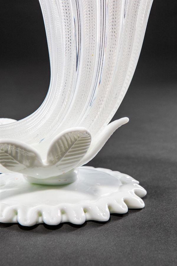Vetro soffiato cristallo e zanfirico lattimo, base in vetro lattimo.