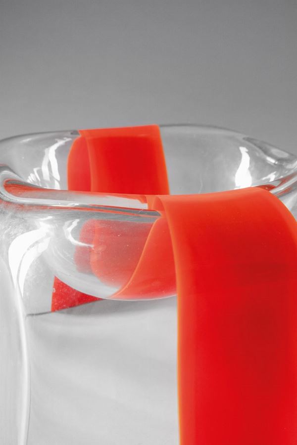 Vetro soffiato cristallo con fascia arancio trasversale.