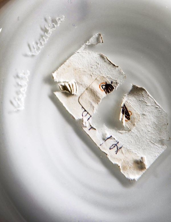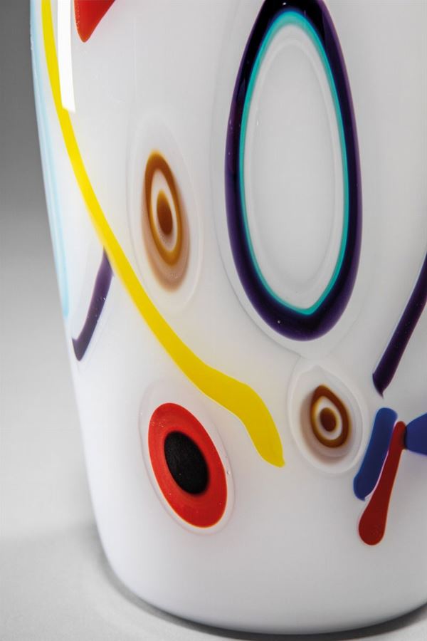 Vetro soffiato lattimo con inclusione di frammenti di canne e murrine policrome.