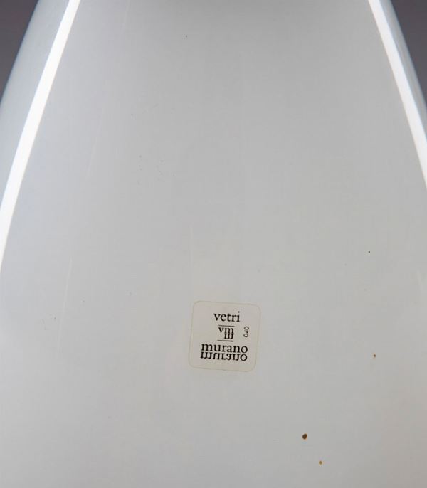 Vetro soffiato lattimo con colletto a canne nero/lattimo.