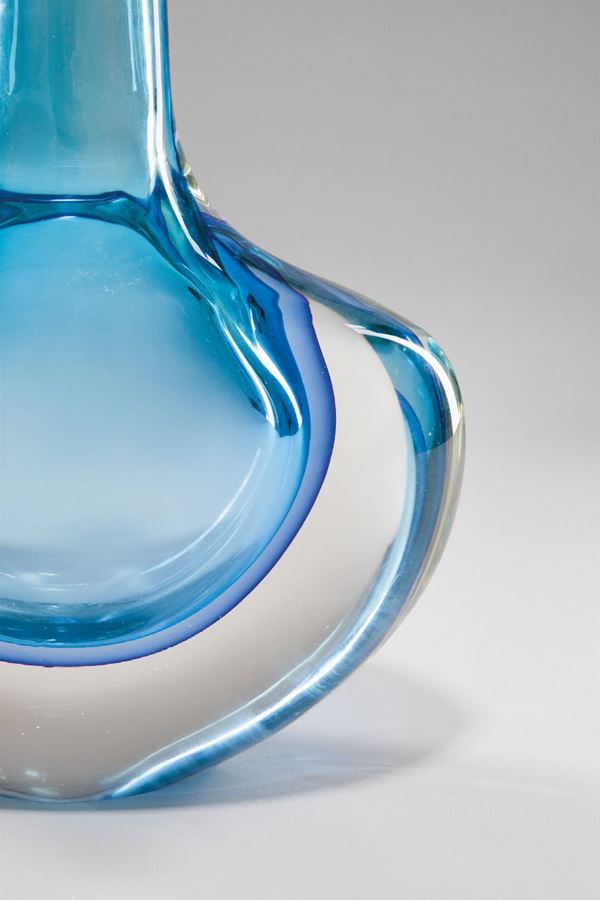 Vetro soffiato sommerso cristallo, blu e turchese.
