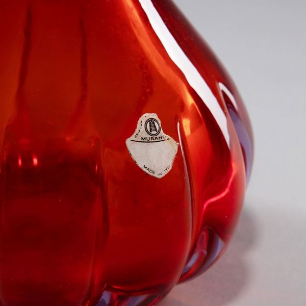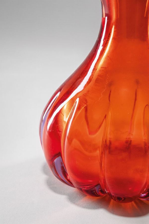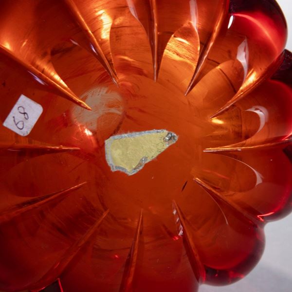 Vetro soffiato sommerso ambra costolato alla base.