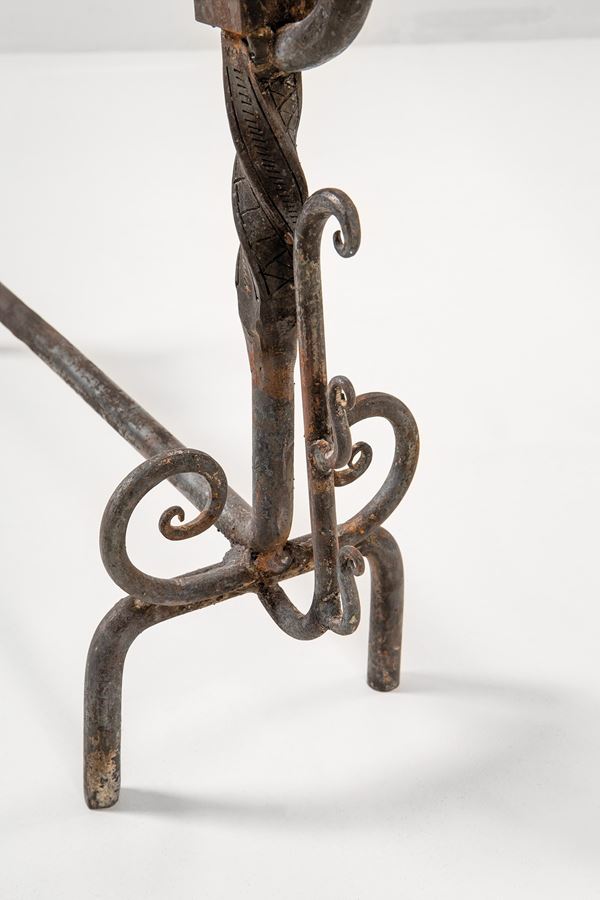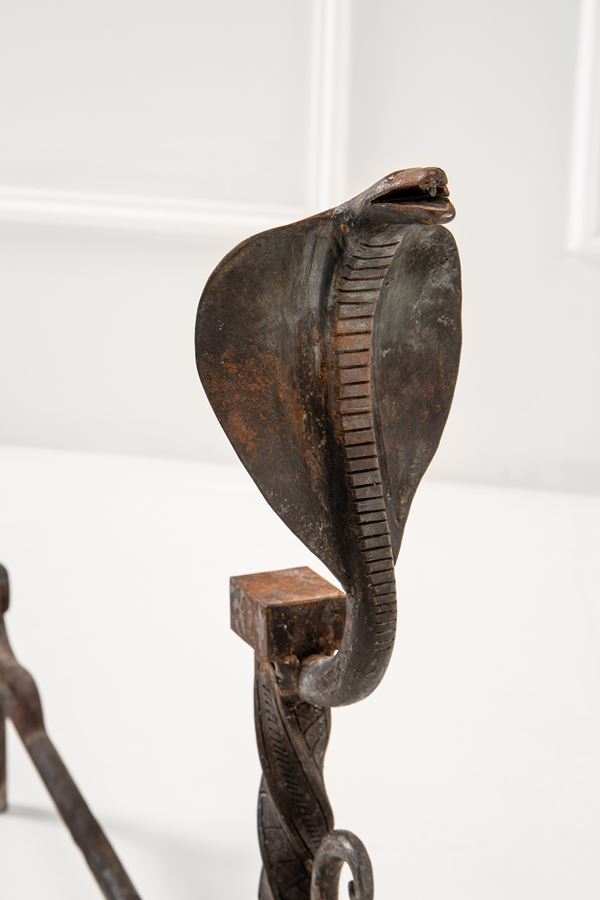 Coppia di alari a guisa di cobra reale