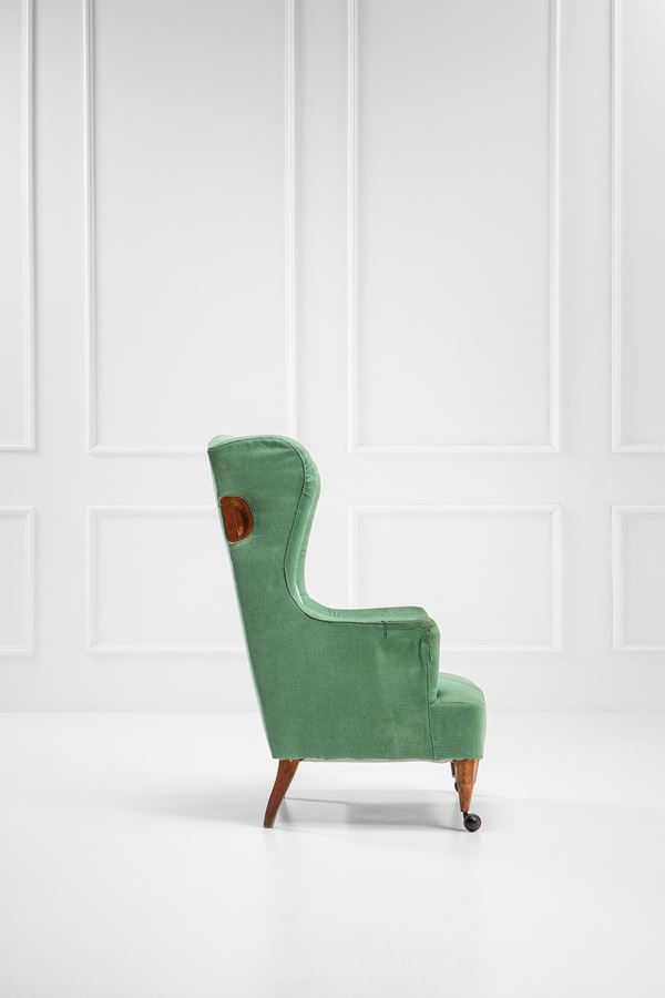 Legno di noce massello, poliuretano espanso, velluto di lana.