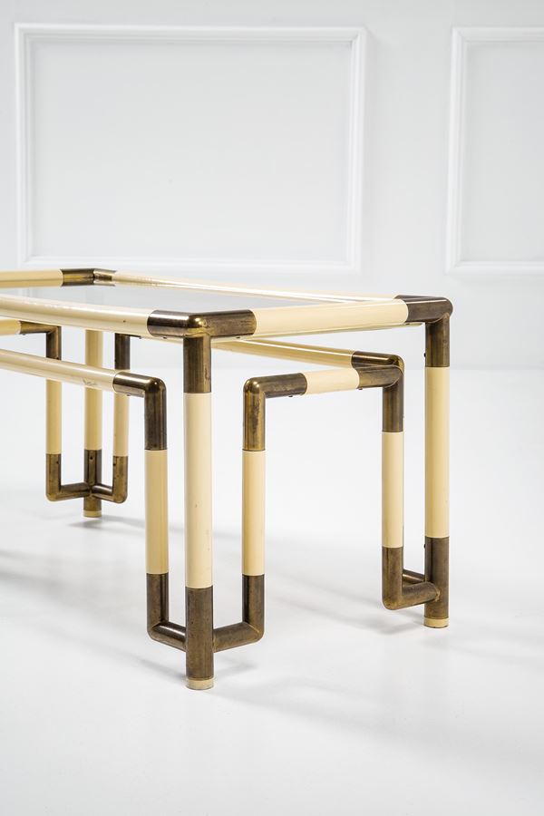 Ottone lucido, resina plastica ad imitazione dell'avorio.