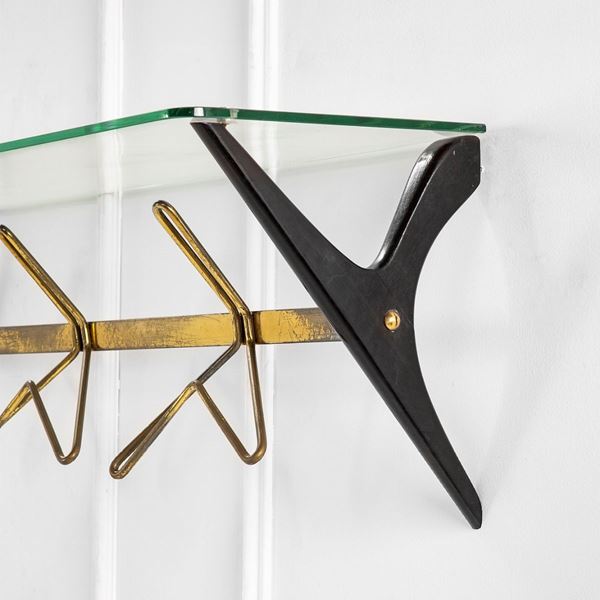 Ottone lucido, legno ebanizzato, cristallo molato.