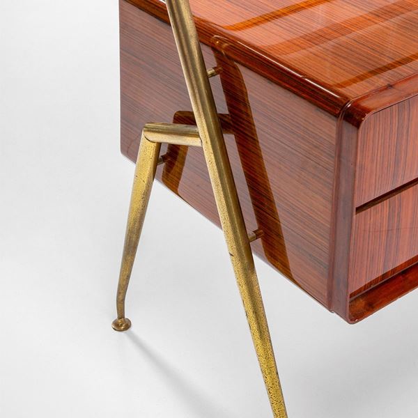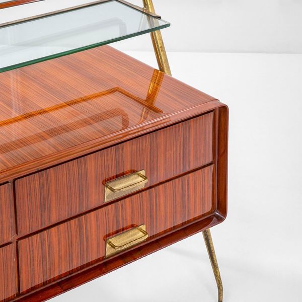 Legno di palissandro, ottone, cristallo specchiato, cristallo trasparente molato.