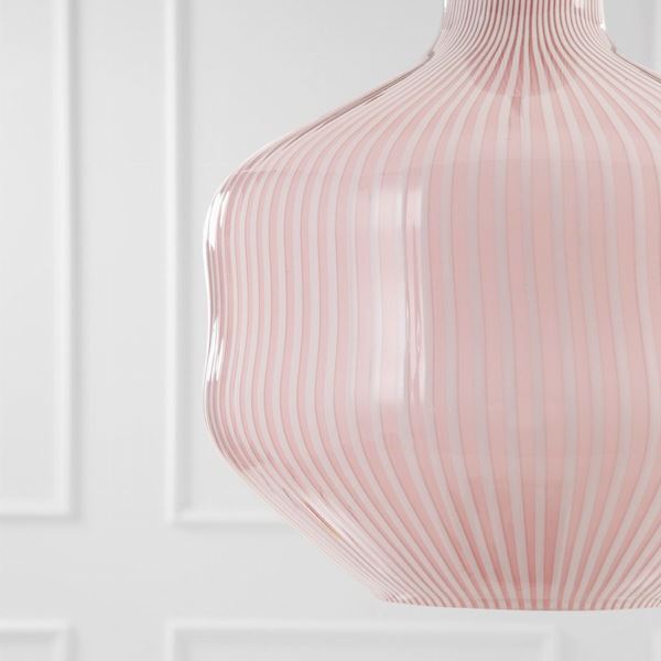 Vetro a canne bianche e rosa, ottone.