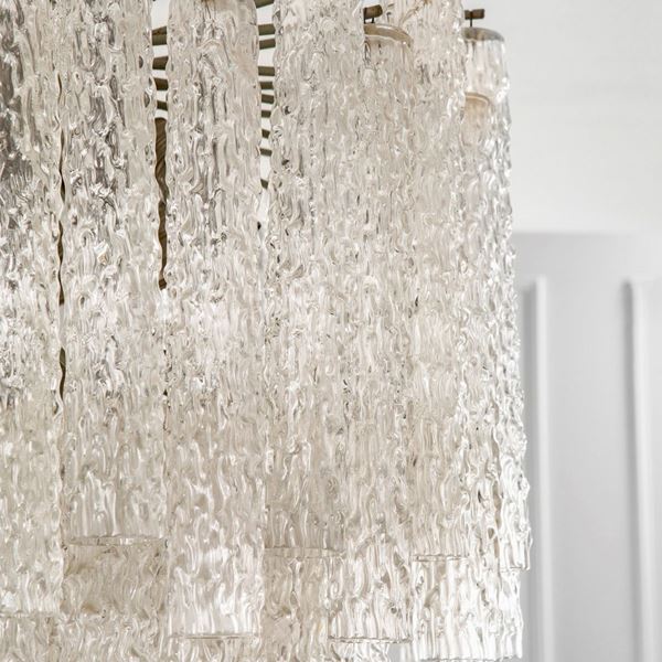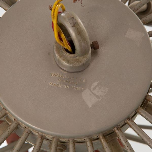 Vetro soffiato in stampo trasparente, metallo verniciato.