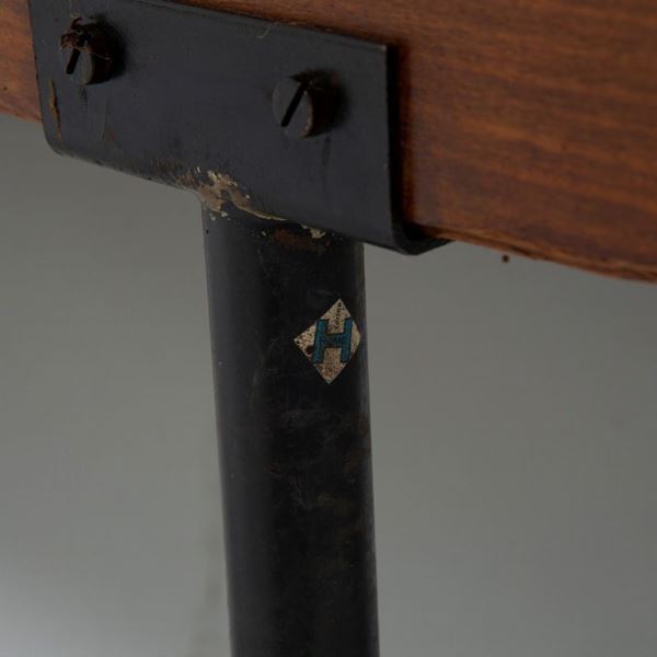 Legno, metallo verniciato, tondino di ferro curvato e laccato.