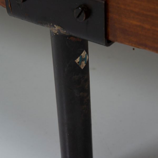 Legno, metallo verniciato, tondino di ferro curvato e laccato.