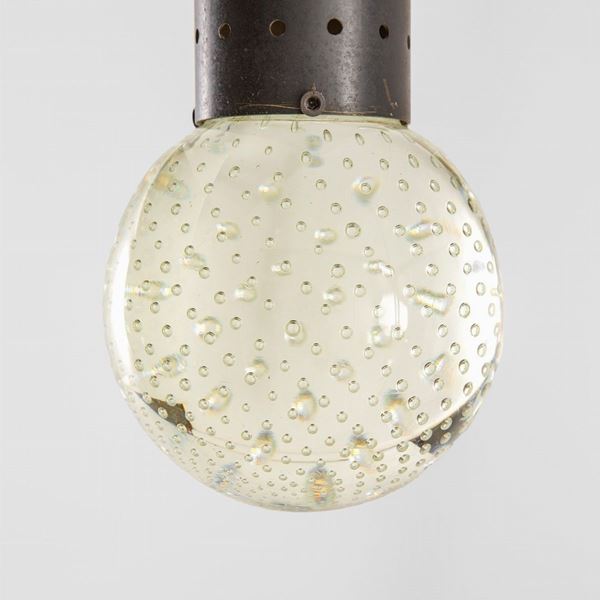 Ottone, metallo verniciato, vetro Seguso a bollicine.