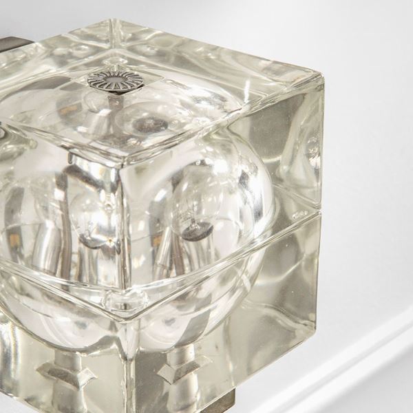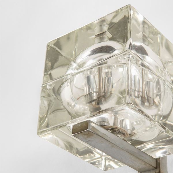 Vetro massiccio stampato, metallo nichelato.