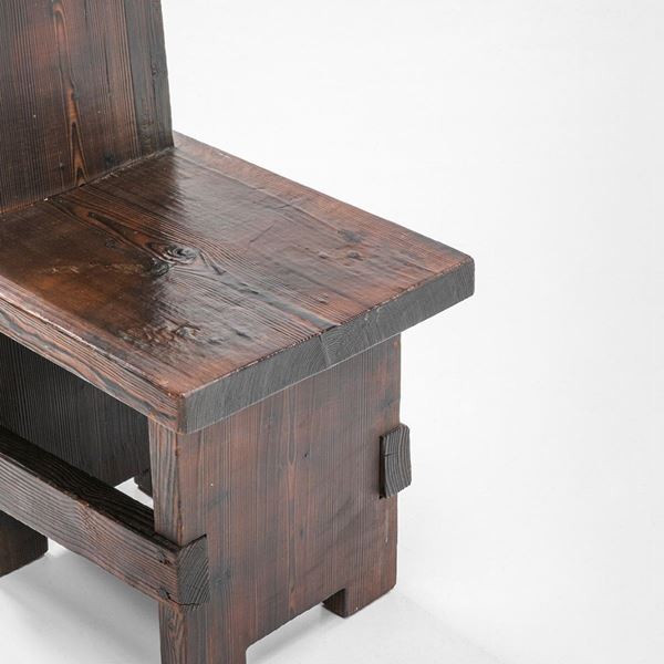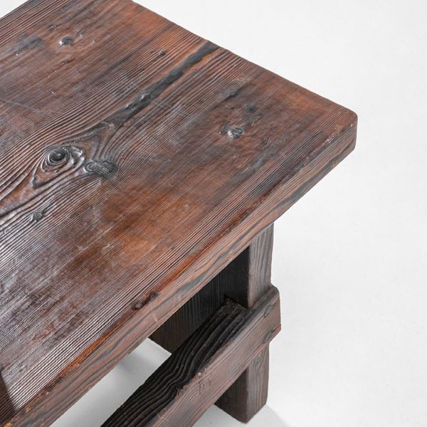 Legno massello trattato con fiamma ossidrica e verniciatura trasparente.