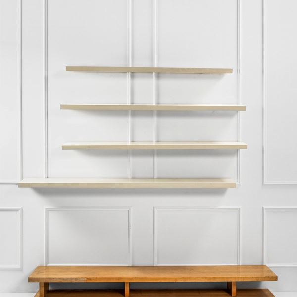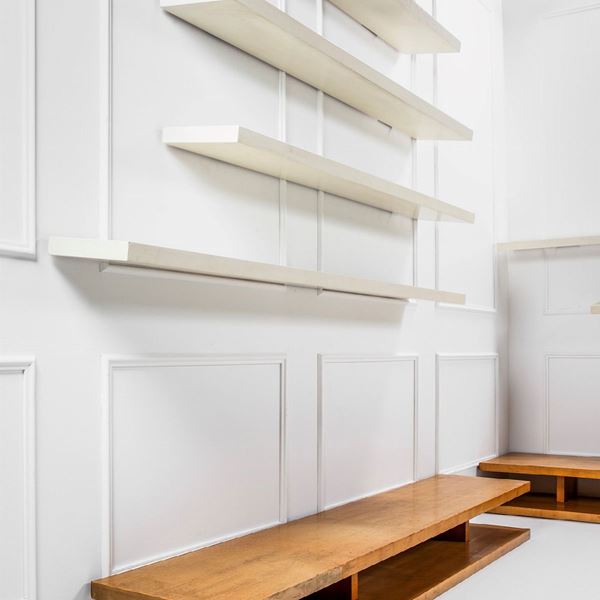 3 mensole cm 180x30; 2 mensole cm 200x30; 1 mensola cm 235x30; panca cm 31x230x60; panca cm 31x260x50