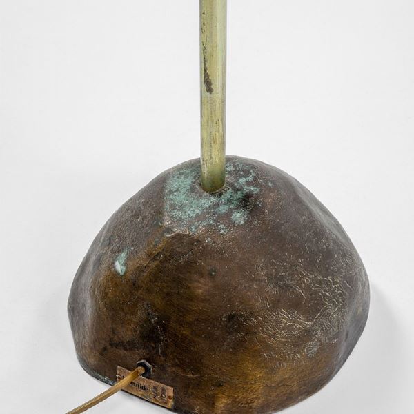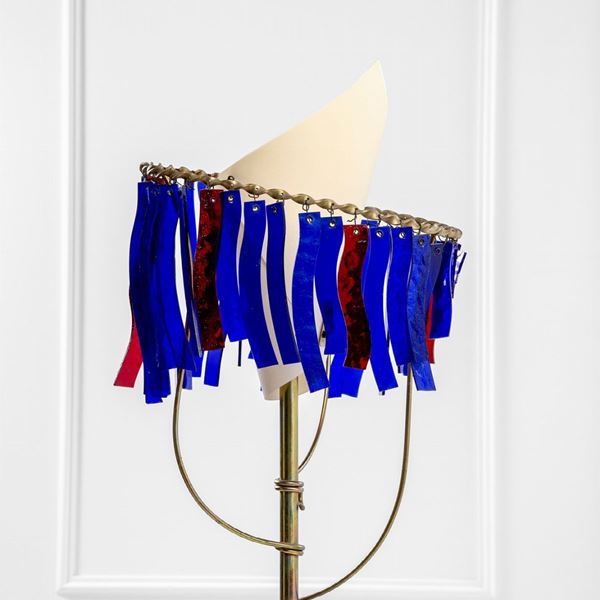 Fusione in bronzo, metallo passivato, vetro cattedrale molato blu e rosso, policarbonato opalino.