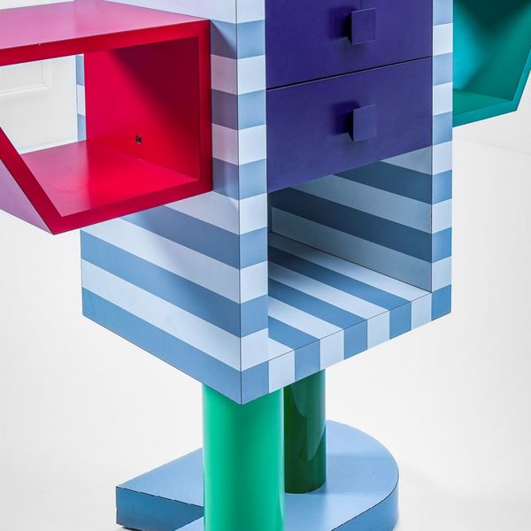 Legno rivestito in laminato plastico, legno laccato, metallo cromato.