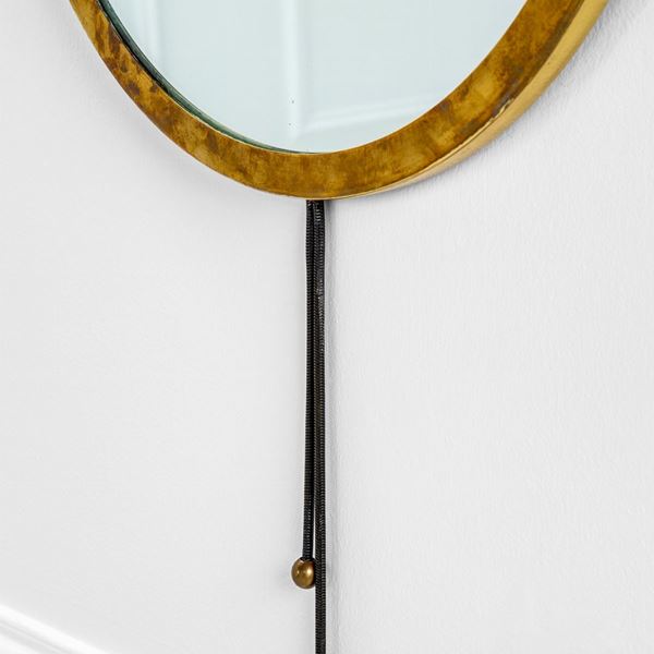 Ottone lucido, vetro argentato, catena regolabile di ottone brunito.