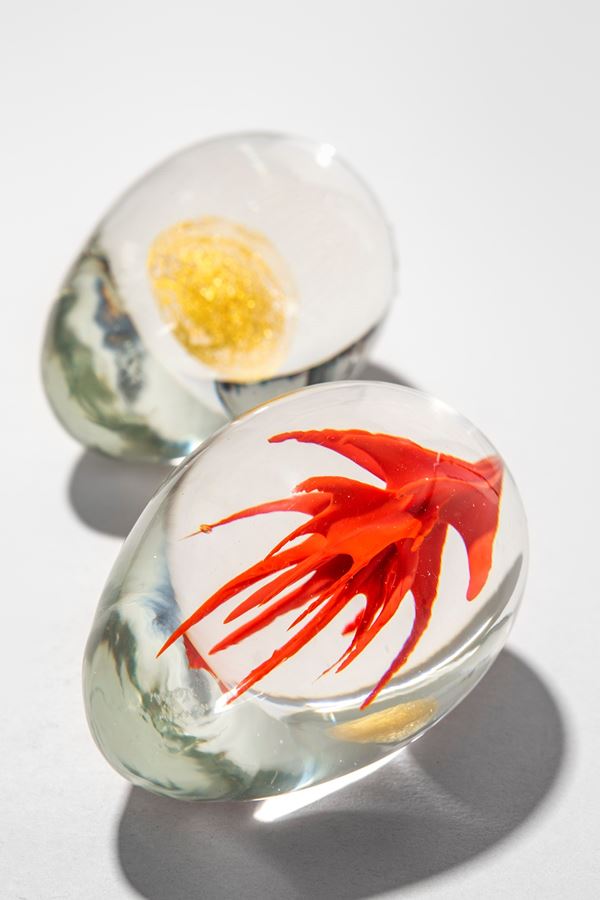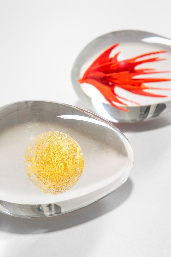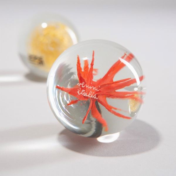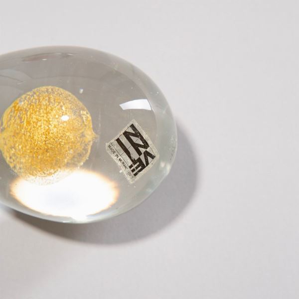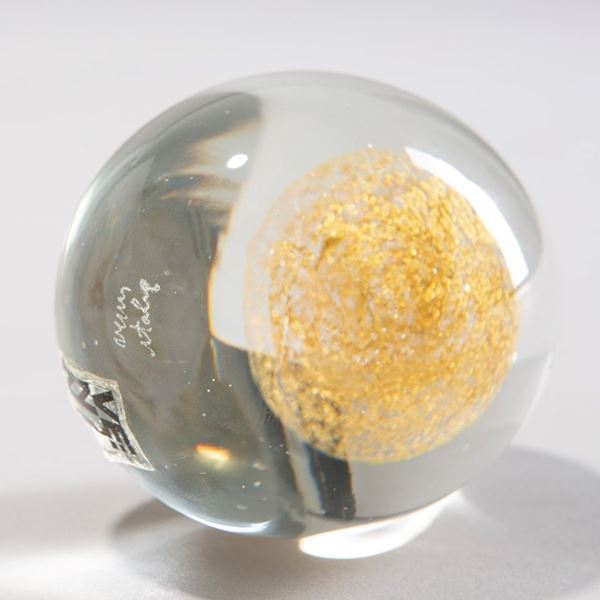 Vetro cristallo massiccio con sfera sommersa in foglia d’oro