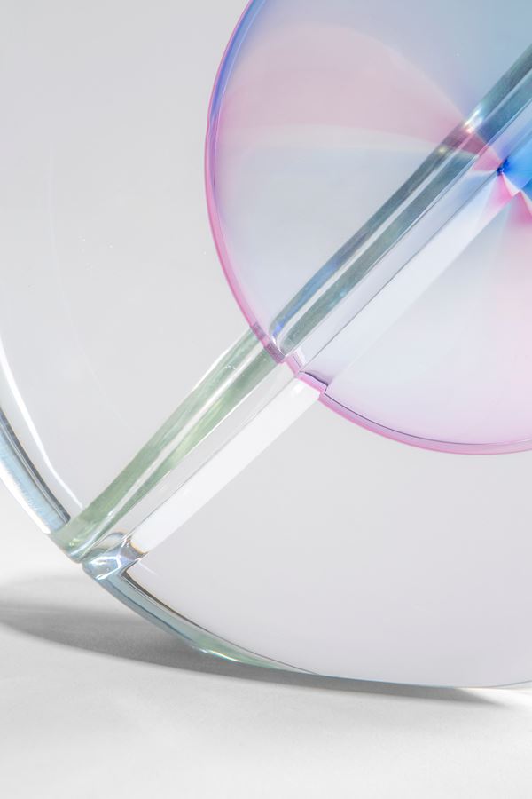 Vetro cristallo con sommersione policroma e profonda molatura diagonale.