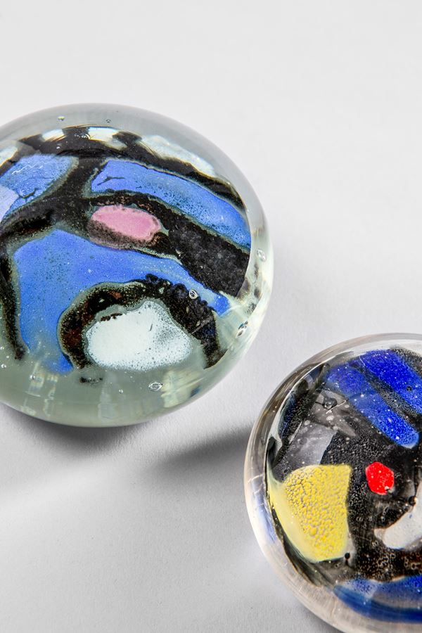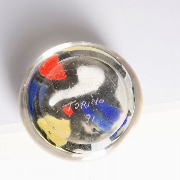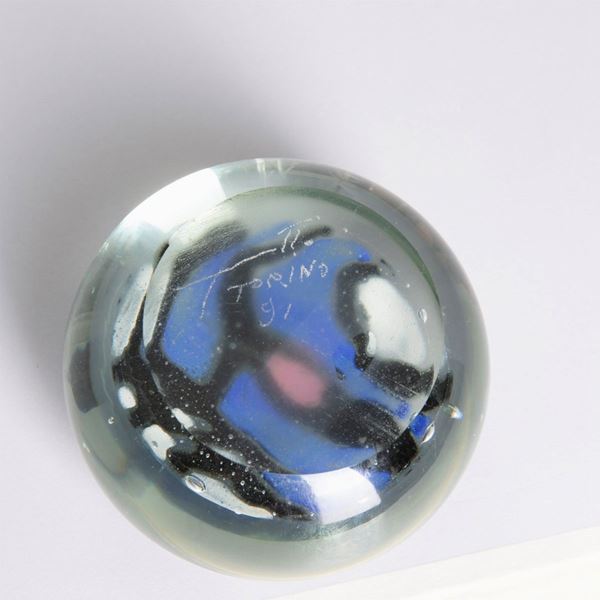 Vetro soffiato cristallo con inclusione di macchie policrome.