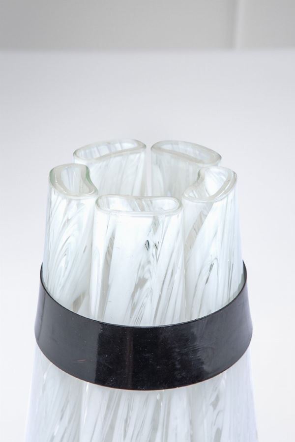 Tubi di vetro ovalizzati, lamierino cromato, metacrilato.